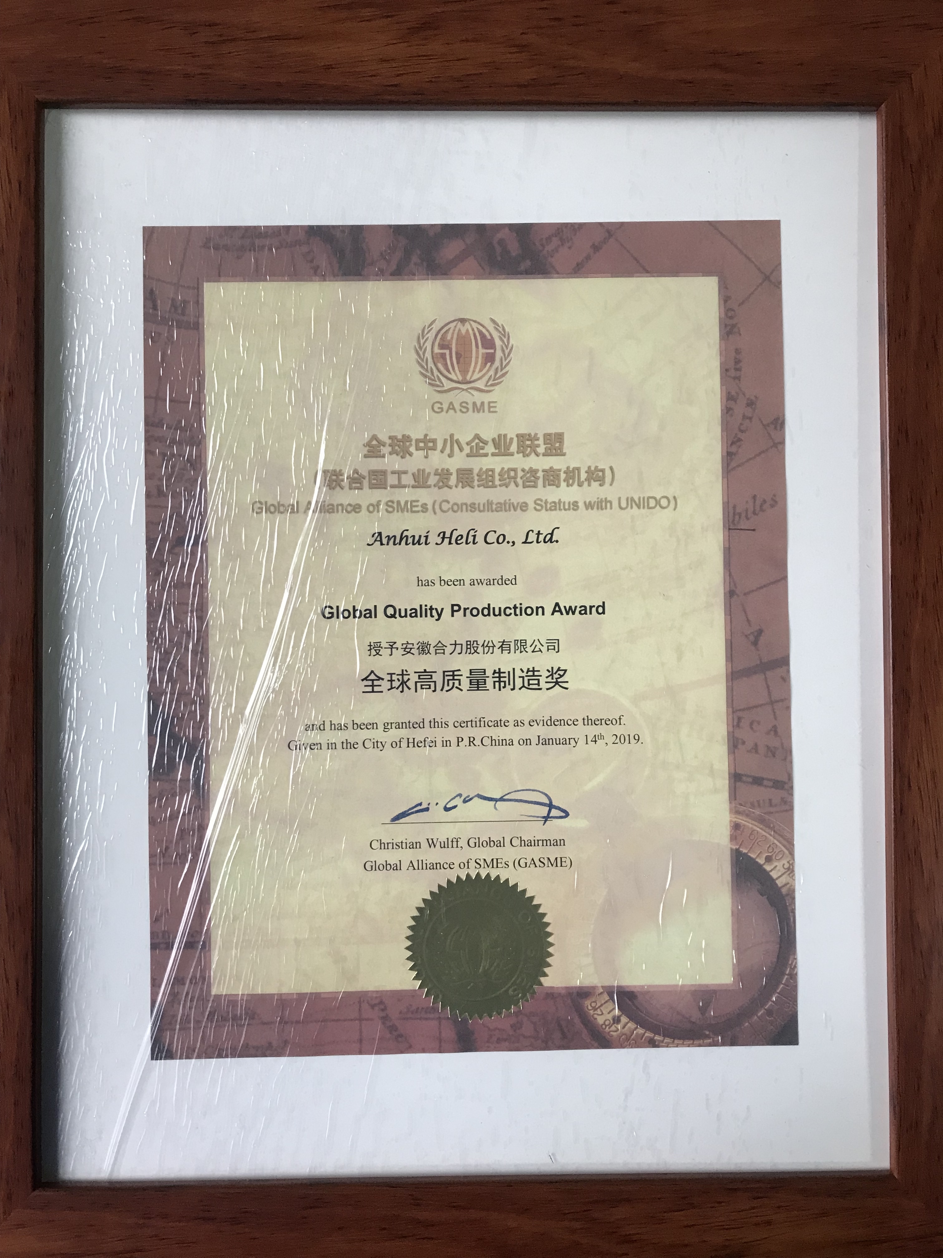 2018 安徽省科學技術獎三等獎 H3系列1-3.5噸內燃平衡重式叉車